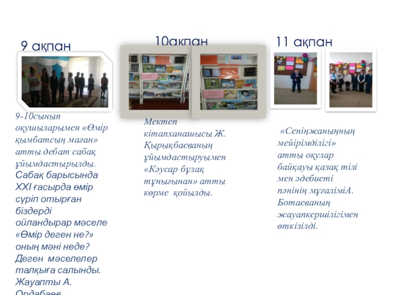 «Сеніңжаныңның мейірімділігі» атты оқулар байқауы қазақ тілі мен әдебиеті пәнінің мұғаліміА.Ботаеваның жауапкершілігімен өткізілді.