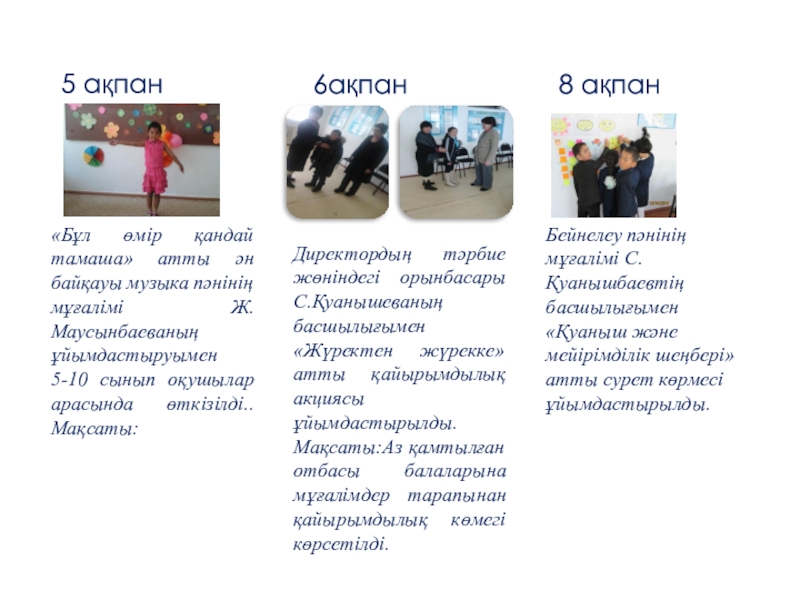 Мақсаты:Аз қамтылған отбасы балаларына мұғалімдер тарапынан қайырымдылық көмегі көрсетілді.