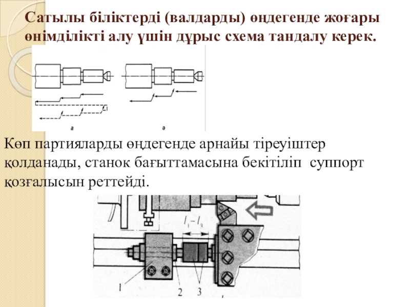 Көп партияларды өңдегенде арнайы тіреуіштер қолданады, станок бағыттамасына бекітіліп суппорт қозғалысын реттейді.