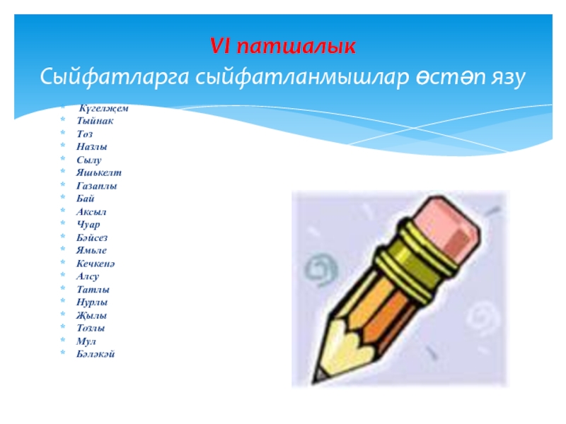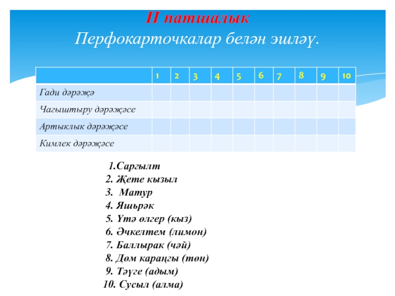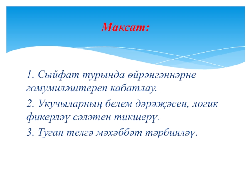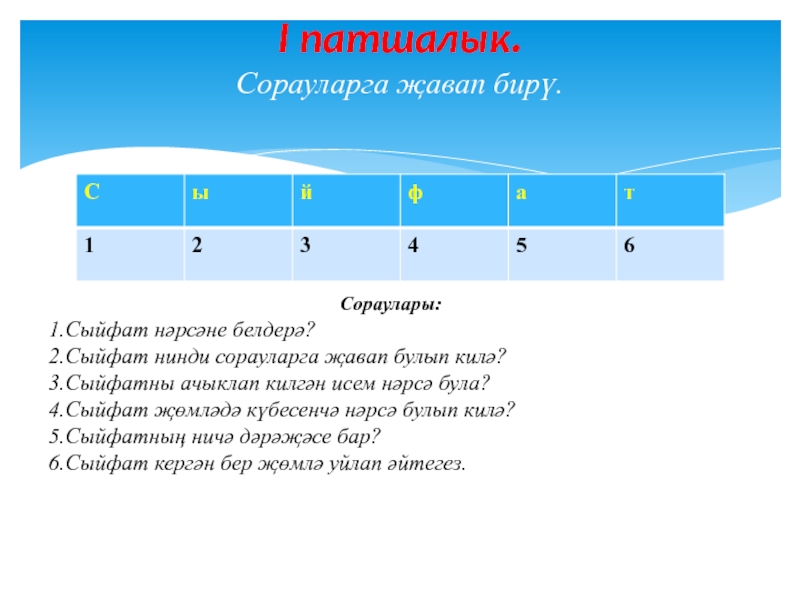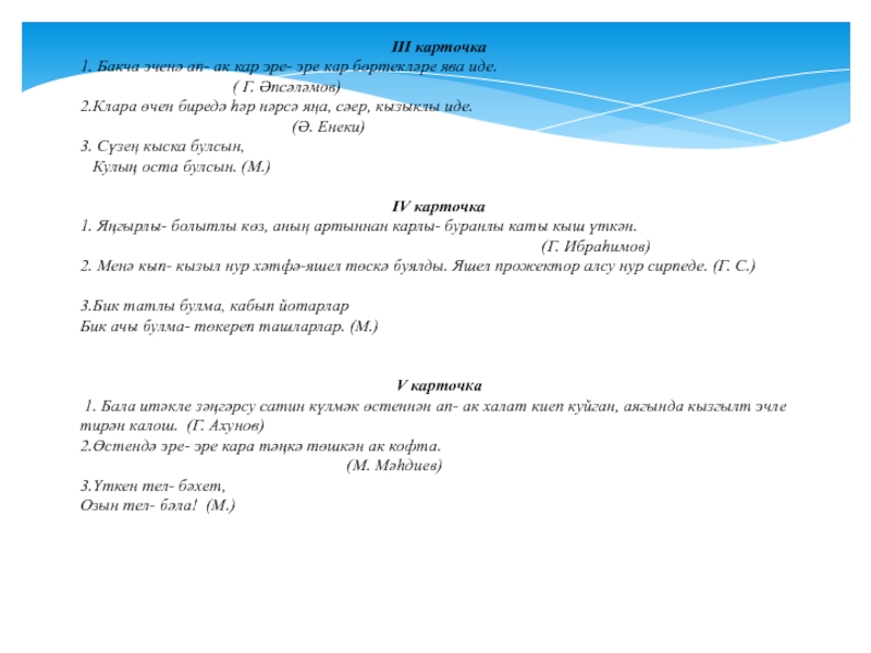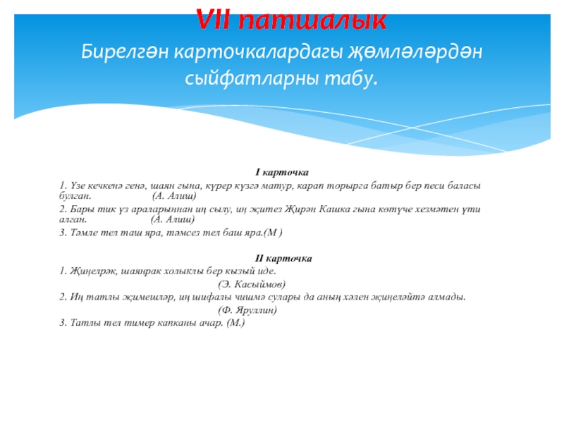 Бирелгән карточкалардагы җөмләләрдән сыйфатларны табу.