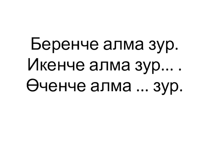 Слайд 9Беренче алма зур. Икенче алма зур... . Өченче алма ... зур.