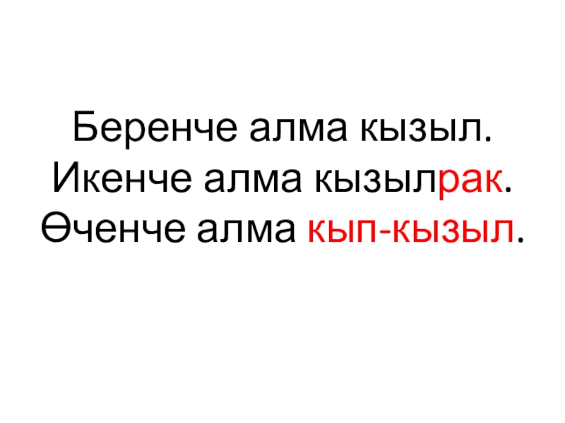 Слайд 7Беренче алма кызыл. Икенче алма кызылрак. Өченче алма кып-кызыл.