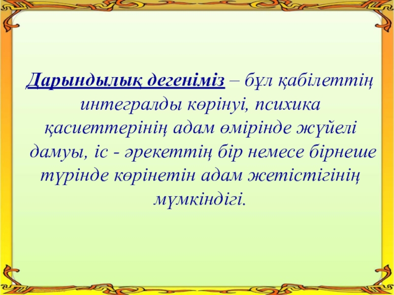 Дарындылық дегеніміз – бұл қабілеттің интегралды көрінуі, психика қасиеттерінің адам өмірінде