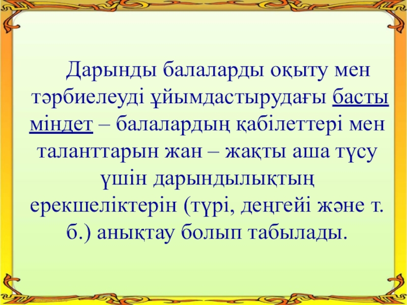 Дарынды балаларды оқыту мен тәрбиелеуді ұйымдастырудағы басты міндет –