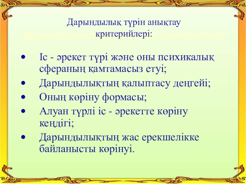 Дарындылық түрін анықтау критерийлері: