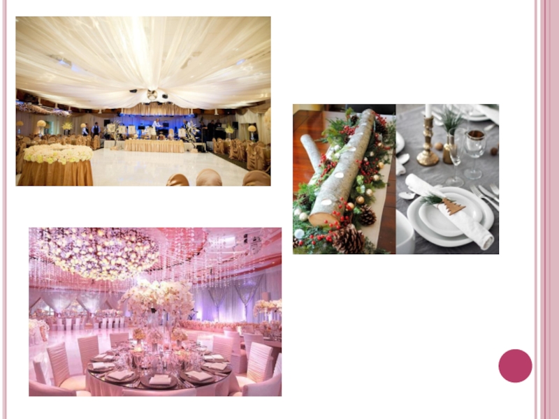 Мейрамхана залының безендірілуі:Тірі өсімдіктер мен жас гүлдердің болуы;Мейрамхананың стиліне сәйкес әуен;Мейрамхананың жалпы стилистикасына сәйкес
