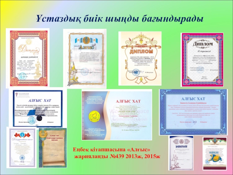 Наградасы, Грамотасы, Алғыс хатының көшірмесі;