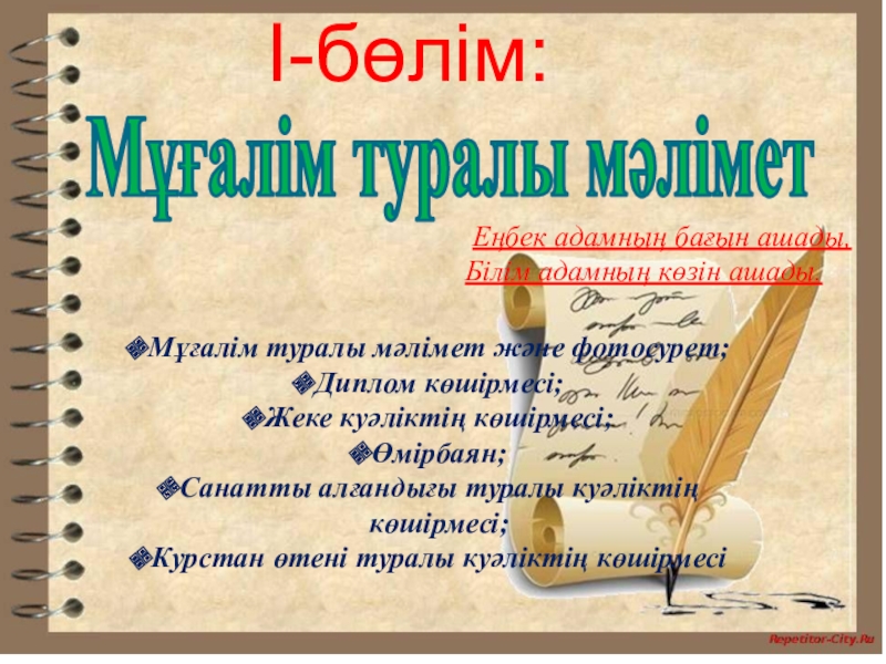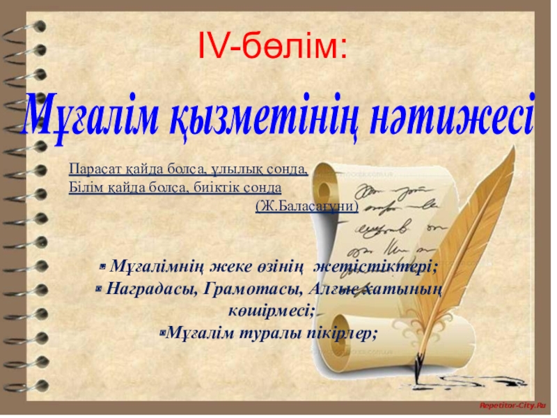 Мұғалімнің жеке өзінің жетістіктері;