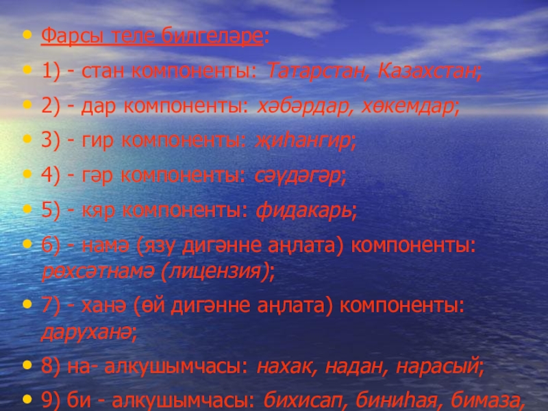 Слайд 10Фарсы теле билгеләре:
