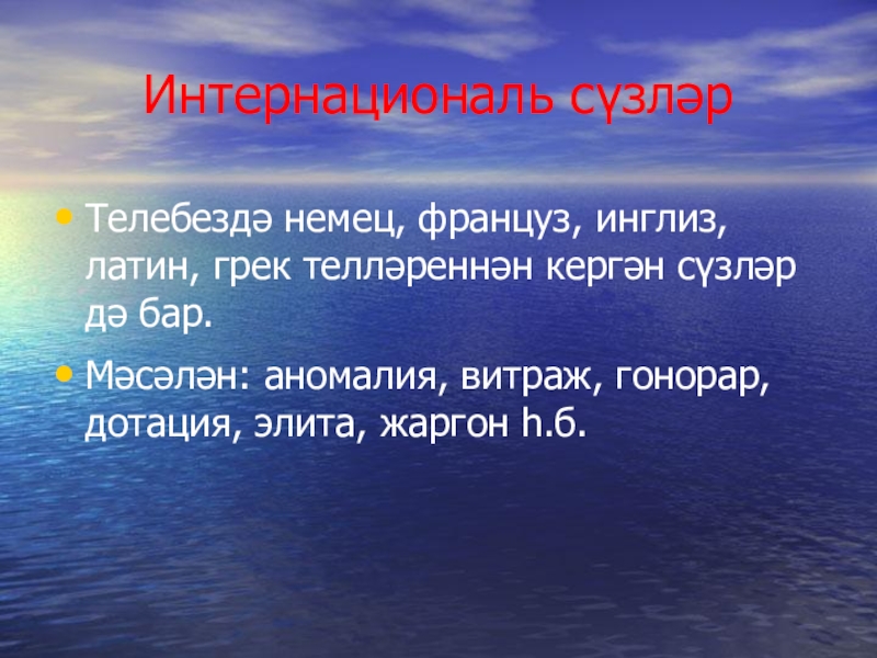 Слайд 12Интернациональ сүзләр