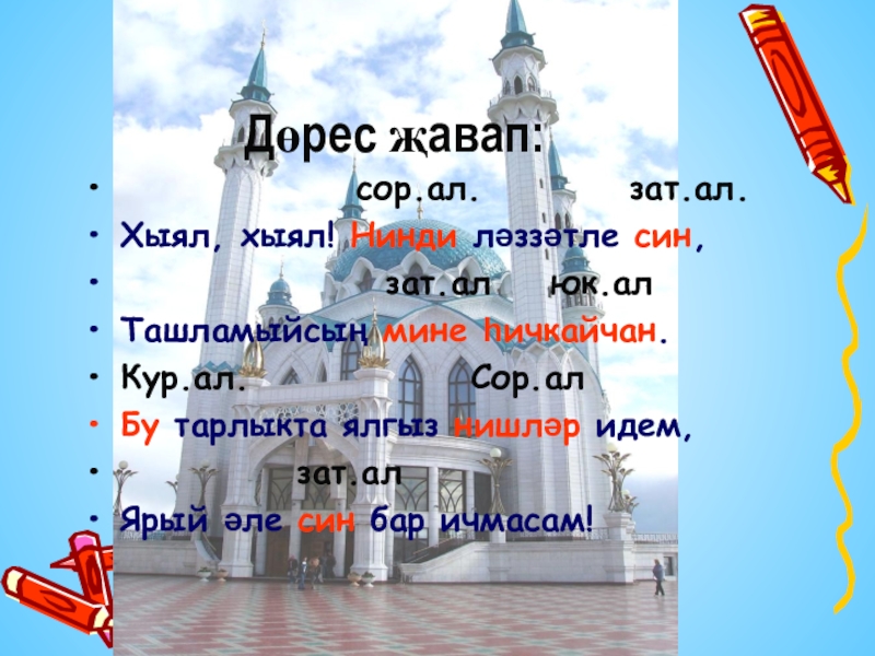 Кем, нәрсә, нинди, кайсы;