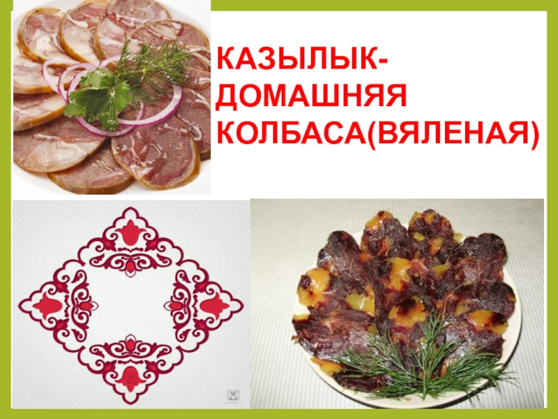Слайд 18КАЗЫЛЫК-ДОМАШНЯЯ КОЛБАСА(ВЯЛЕНАЯ)