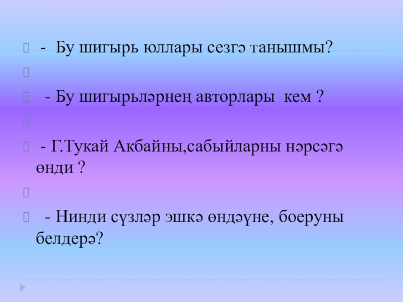 Слайд 3 - Бу шигырь юллары сезгә танышмы?