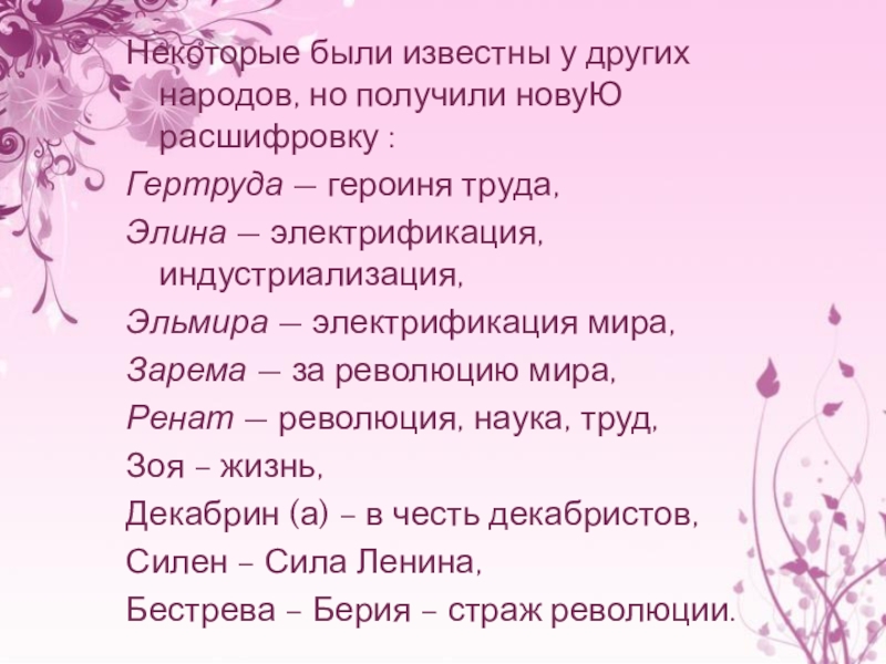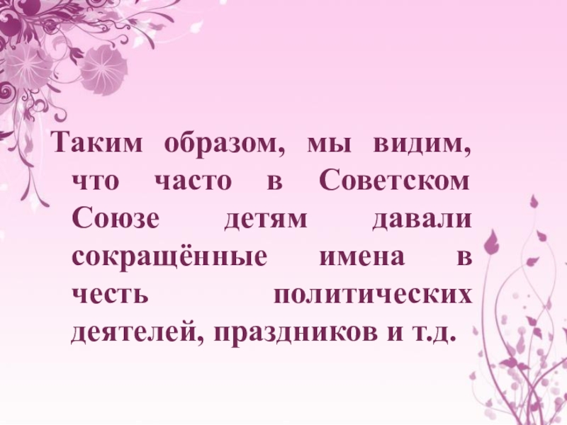 детям давали сокращённые имена в честь политических деятелей, праздников и т.д.