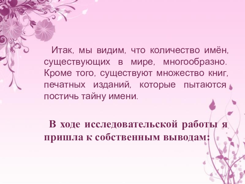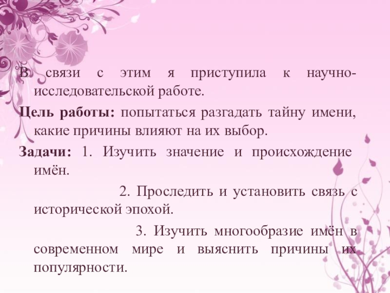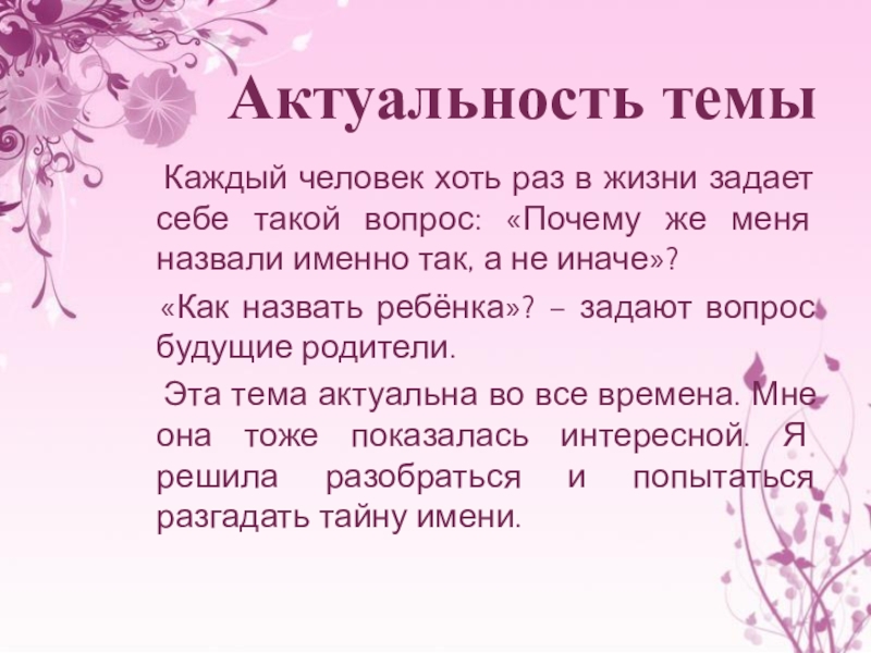 Эта тема актуальна во все времена. Мне она тоже показалась интересной. Я решила разобраться и попытаться разгадать тайну имени.