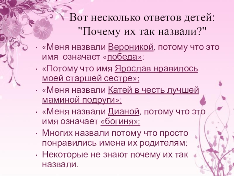 Слайд 11Вот несколько ответов детей: "Почему их так назвали?"