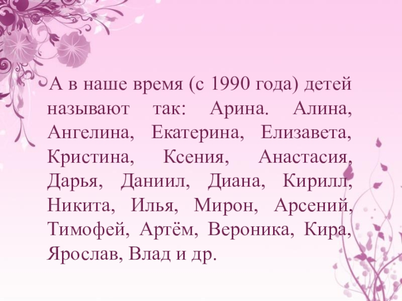 Слайд 10 А в наше время (с 1990 года) детей называют