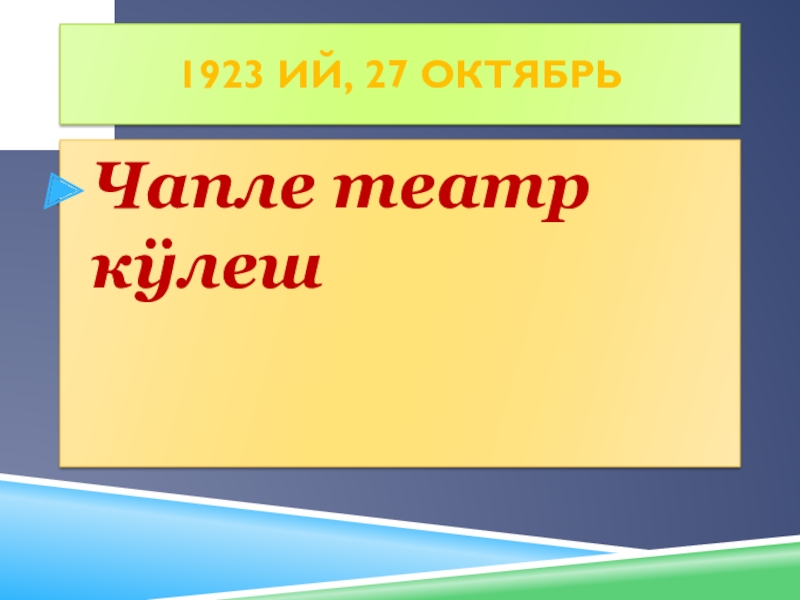 1923 ий, 27 октябрьЧапле театр кÿлеш