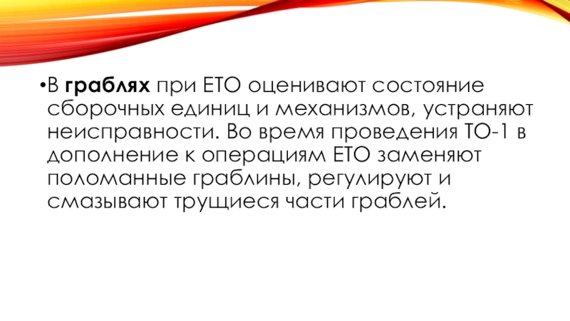 Слайд 7В граблях при ЕТО оценивают состояние сборочных единиц и механизмов, устраняют