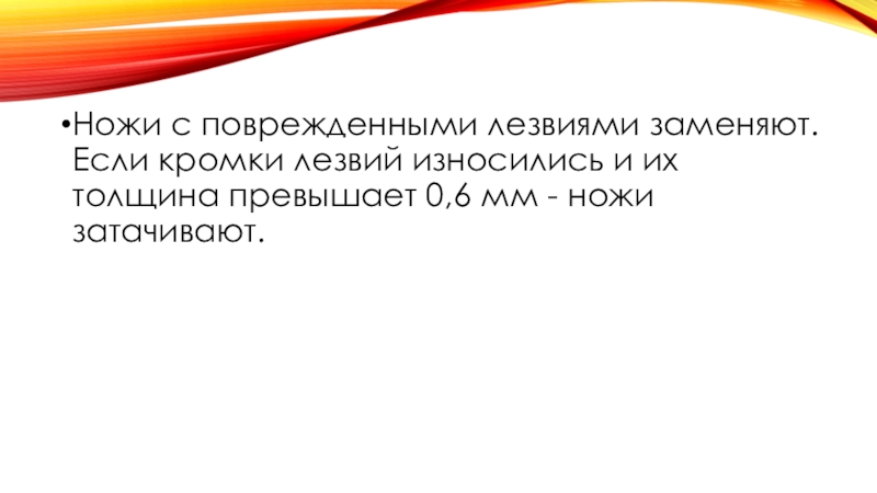 Слайд 13Ножи с поврежденными лезвиями заменяют. Если кромки лезвий износились и их