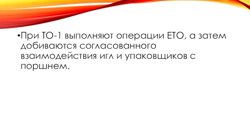 Слайд 9При ТО-1 выполняют операции ЕТО, а затем добиваются согласованного взаимодействия игл