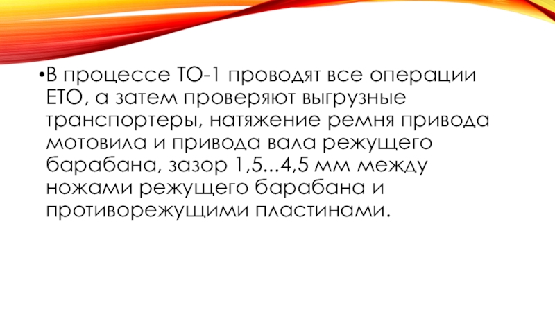 Слайд 12В процессе ТО-1 проводят все операции ЕТО, а затем проверяют выгрузные