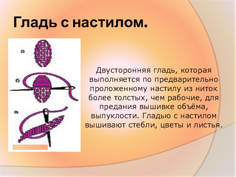 Народ, вместо серебряных и золотых нитей стал использовать толстую шерстяную пряжу чаще всего красного цвета с добавлением синих, желтых, зеленых вкраплений. Этой вышивкой украшалась одежда, подзоры, скатерти.