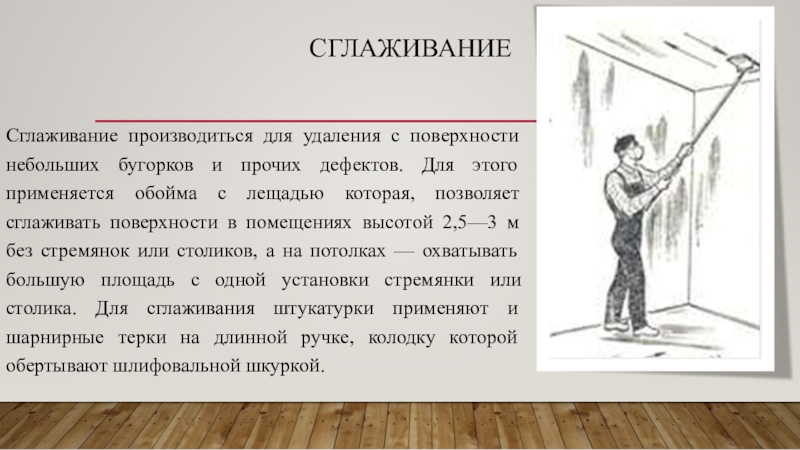 Сглаживание производиться для удаления с поверхности небольших бугорков и прочих дефектов.