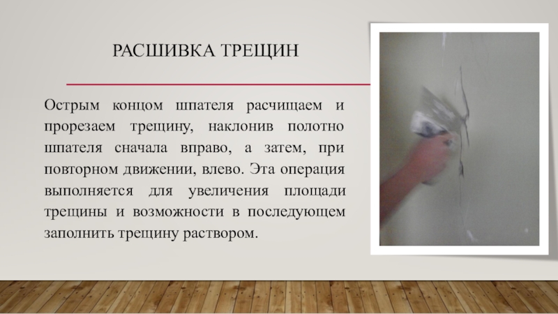 Слайд 4РАСШИВКА ТРЕЩИН