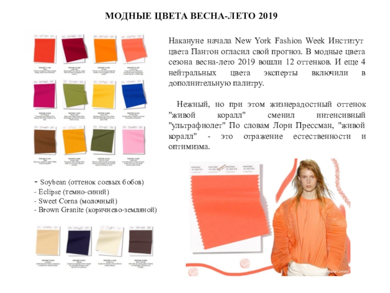 МОДНЫЕ ЦВЕТА ВЕСНА-ЛЕТО 2019