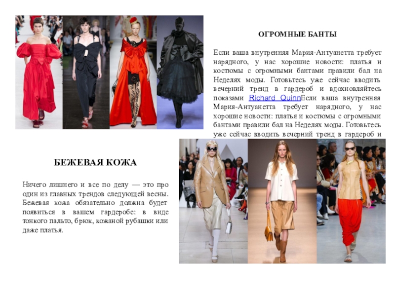 Ничего лишнего и все по делу — это про один из главных трендов следующей весны. Бежевая кожа обязательно должна будет появиться в вашем гардеробе: в виде тонкого пальто, брюк, кожаной рубашки или даже платья.