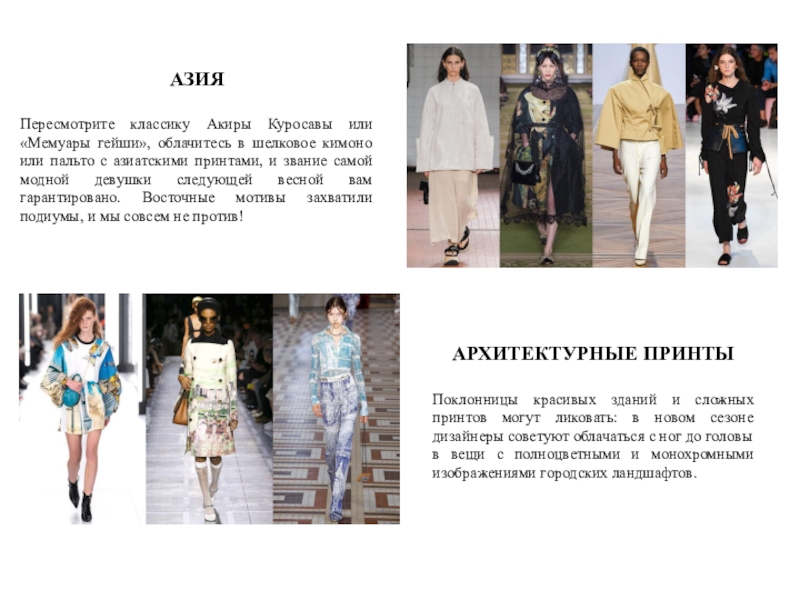 Поклонницы красивых зданий и сложных принтов могут ликовать: в новом сезоне дизайнеры советуют облачаться с ног до головы в вещи с полноцветными и монохромными изображениями городских ландшафтов.