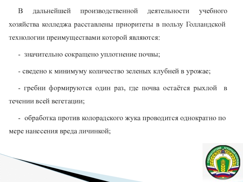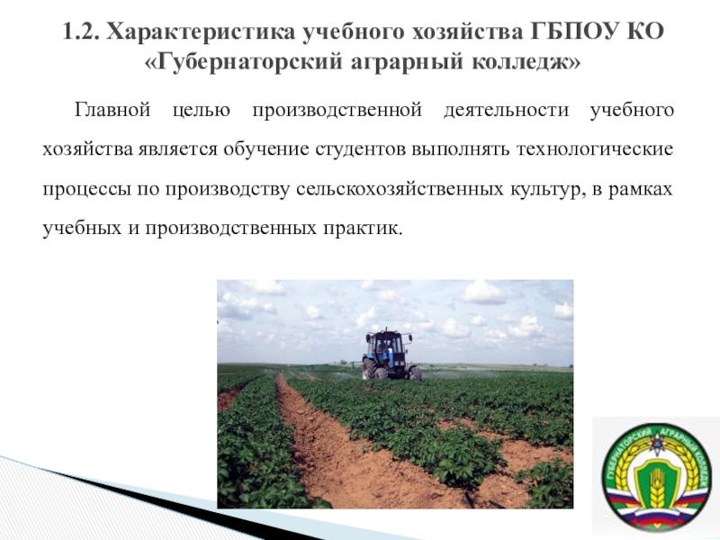 1.2. Характеристика учебного хозяйства ГБПОУ КО «Губернаторский аграрный колледж»