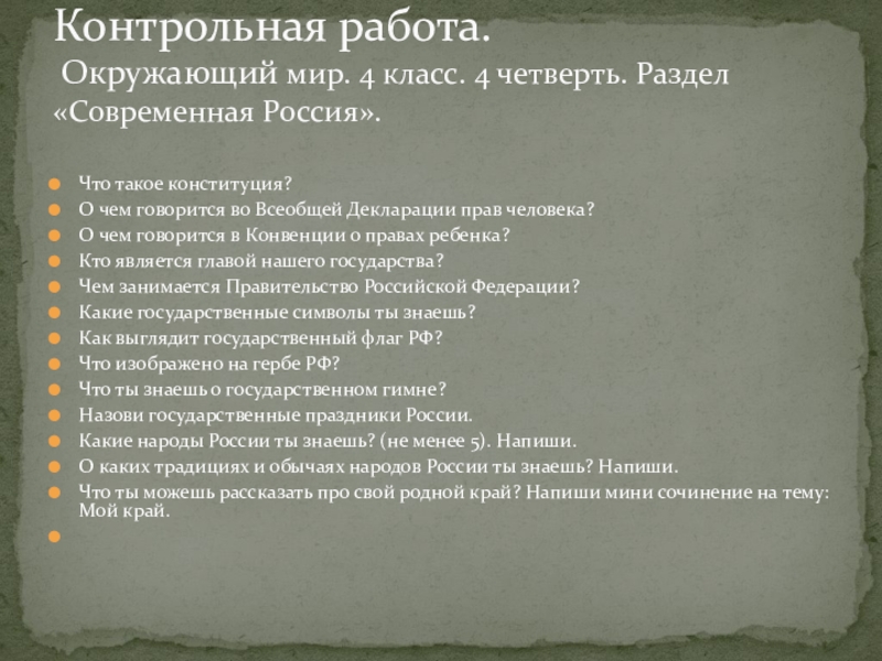 Окружающий мир. 4 класс. 4 четверть. Раздел «Современная Россия».