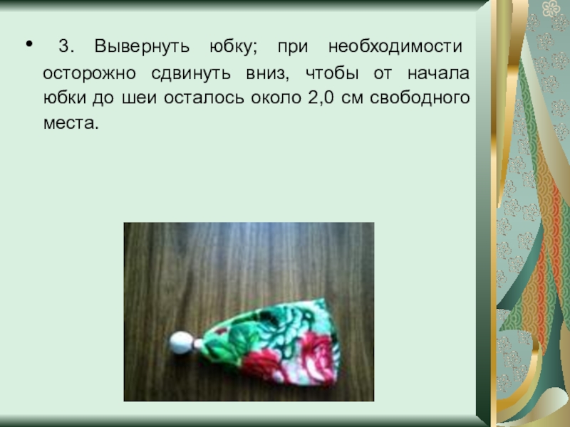 Слайд 7 3. Вывернуть юбку; при необходимости осторожно сдвинуть вниз, чтобы от