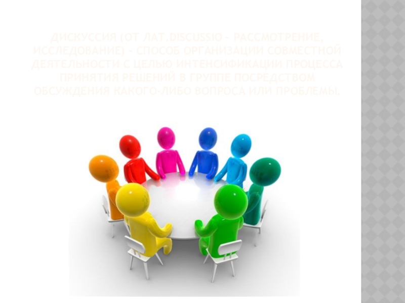 Слайд 2ДИСКУССИЯ (ОТ ЛАТ.DISCUSSIO – РАССМОТРЕНИЕ, ИССЛЕДОВАНИЕ) – СПОСОБ ОРГАНИЗАЦИИ СОВМЕСТНОЙ ДЕЯТЕЛЬНОСТИ