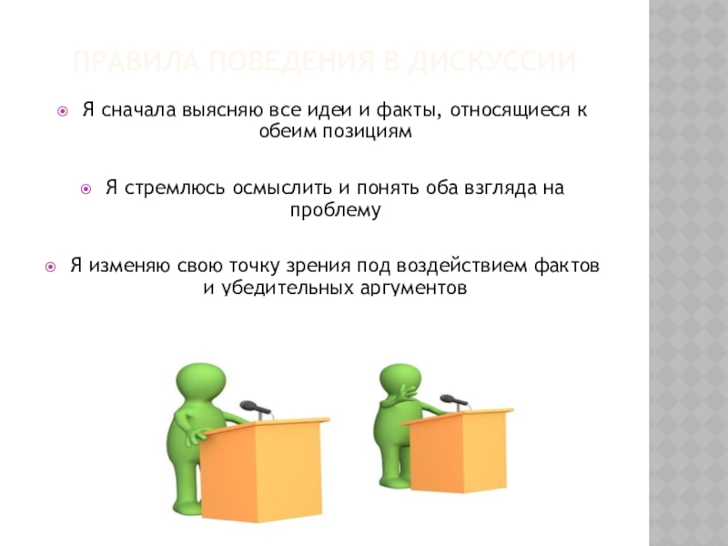Слайд 14ПРАВИЛА ПОВЕДЕНИЯ В ДИСКУССИИ