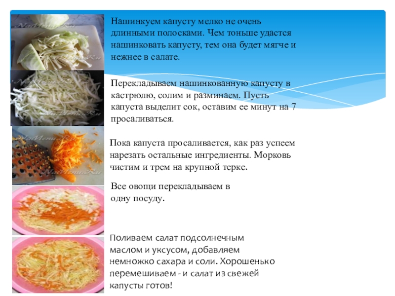 Поливаем салат подсолнечным маслом и уксусом, добавляем немножко сахара и соли. Хорошенько перемешиваем - и салат из свежей капусты готов!