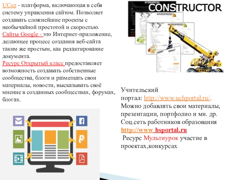 Учительский портал: http://www.uchportal.ru/. Можно добавлять свои материалы, презентации, портфолио и мн. др.
