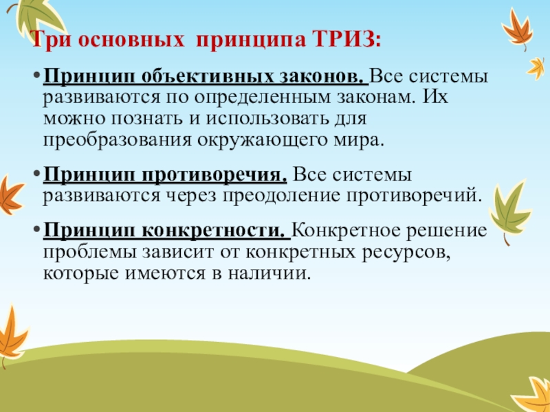 Принцип конкретности. Конкретное решение проблемы зависит от конкретных ресурсов, которые имеются в наличии.
