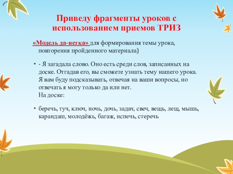 Слайд 10Приведу фрагменты уроков с использованием приемов ТРИЗ