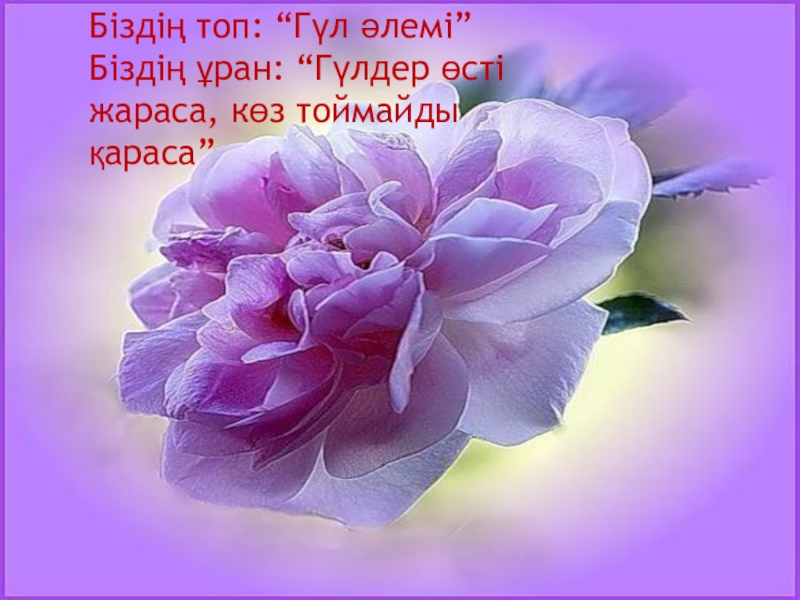 Слайд 14Біздің топ: “Гүл әлемі” Біздің ұран: “Гүлдер өсті жараса, көз тоймайды