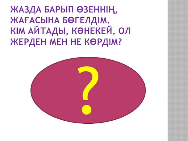 Слайд 4Жазда барып өзеннің, жағасына бөгелдім. Кім айтады, кәнекей, ол жерден мен