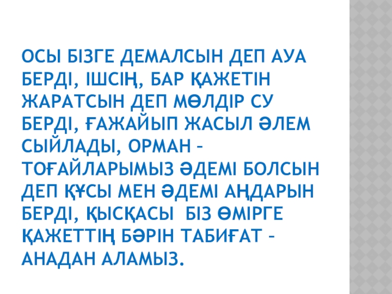Слайд 63Осы бізге демалсын деп ауа берді, ішсің, бар қажетін жаратсын деп