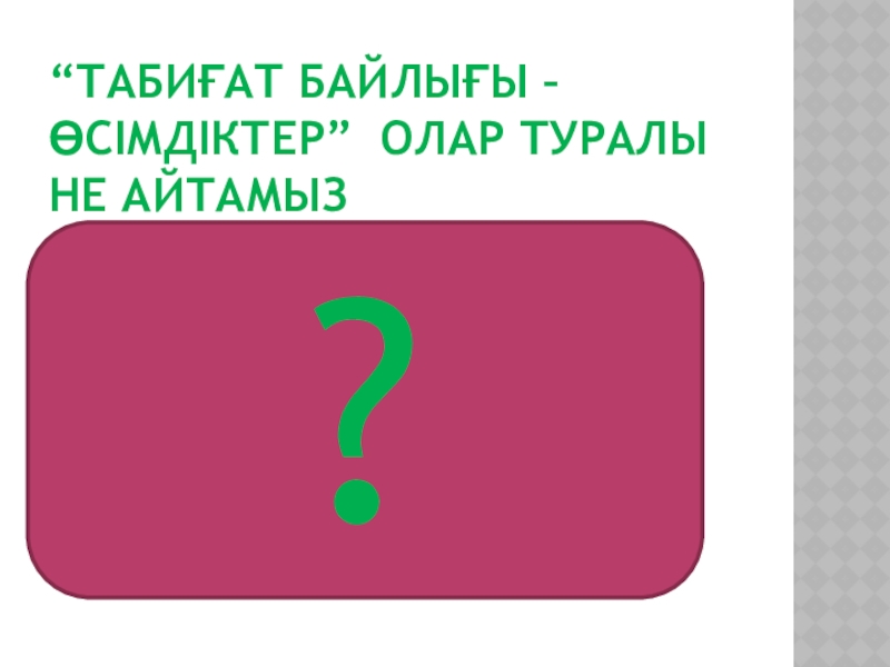 Слайд 34“Табиғат байлығы – өсімдіктер” олар туралы не айтамыз