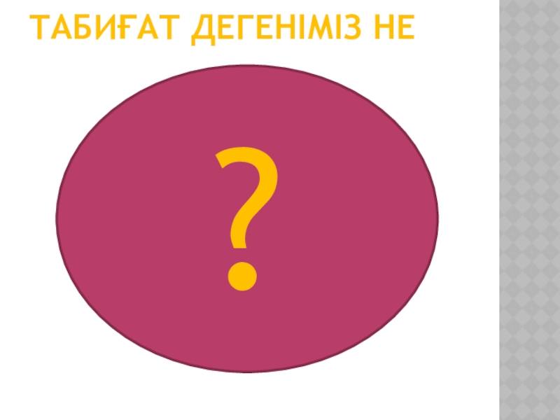 Слайд 33Табиғат дегеніміз бізді қоршаған орта. Табиғатсыз тіршілік жоқ. Өйткені адам мен