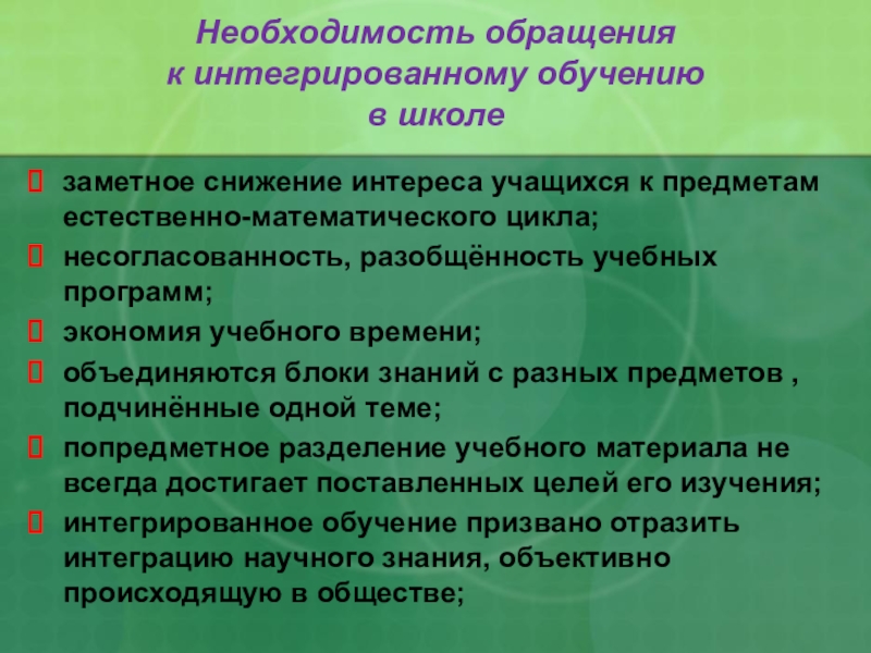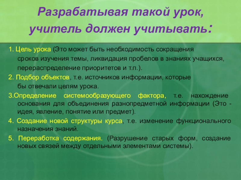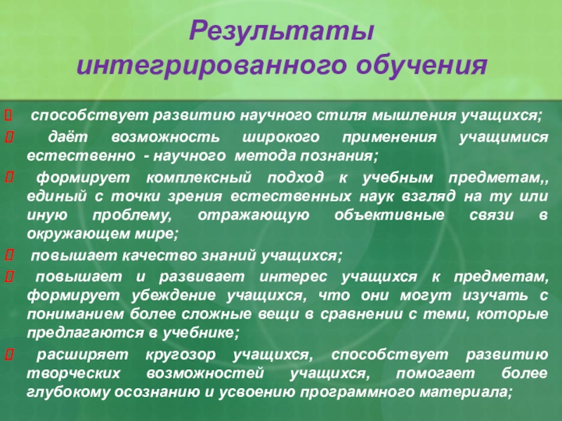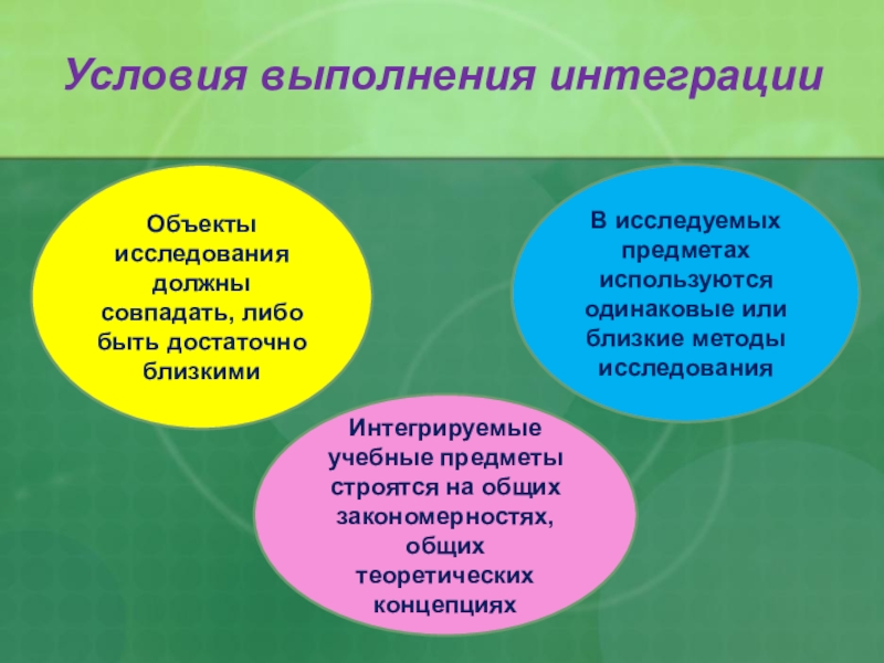 Интегрируемые учебные предметы строятся на общих закономерностях, общих теоретических концепциях