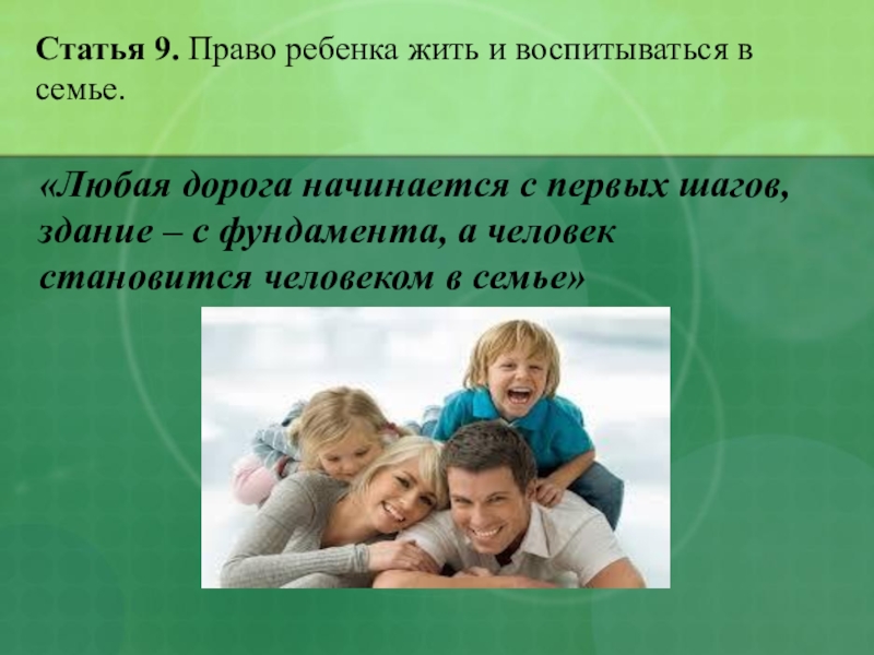 Статья 9. Право ребенка жить и воспитываться в семье.