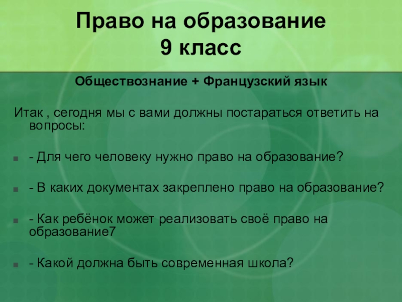 Цель: сформировать целостные пропедевтические знания в начале изучения темы или раздела программы