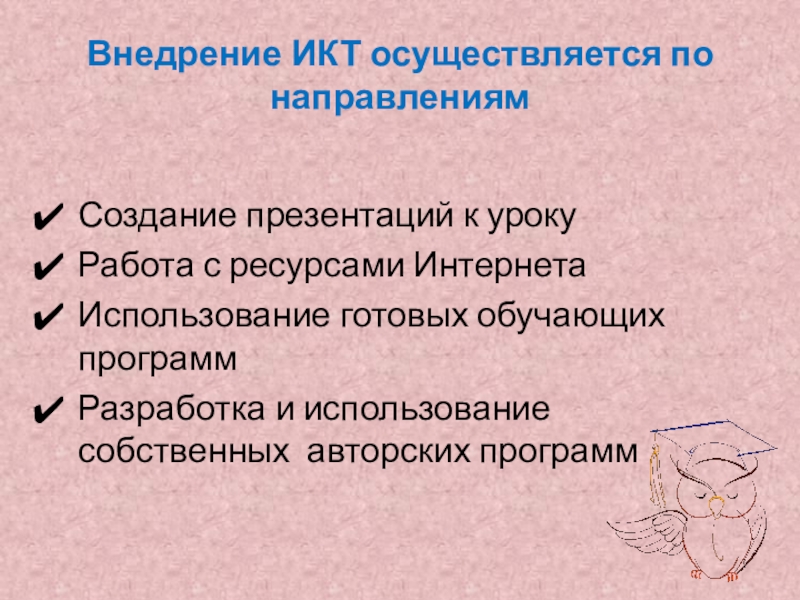Слайд 9Внедрение ИКТ осуществляется по направлениям